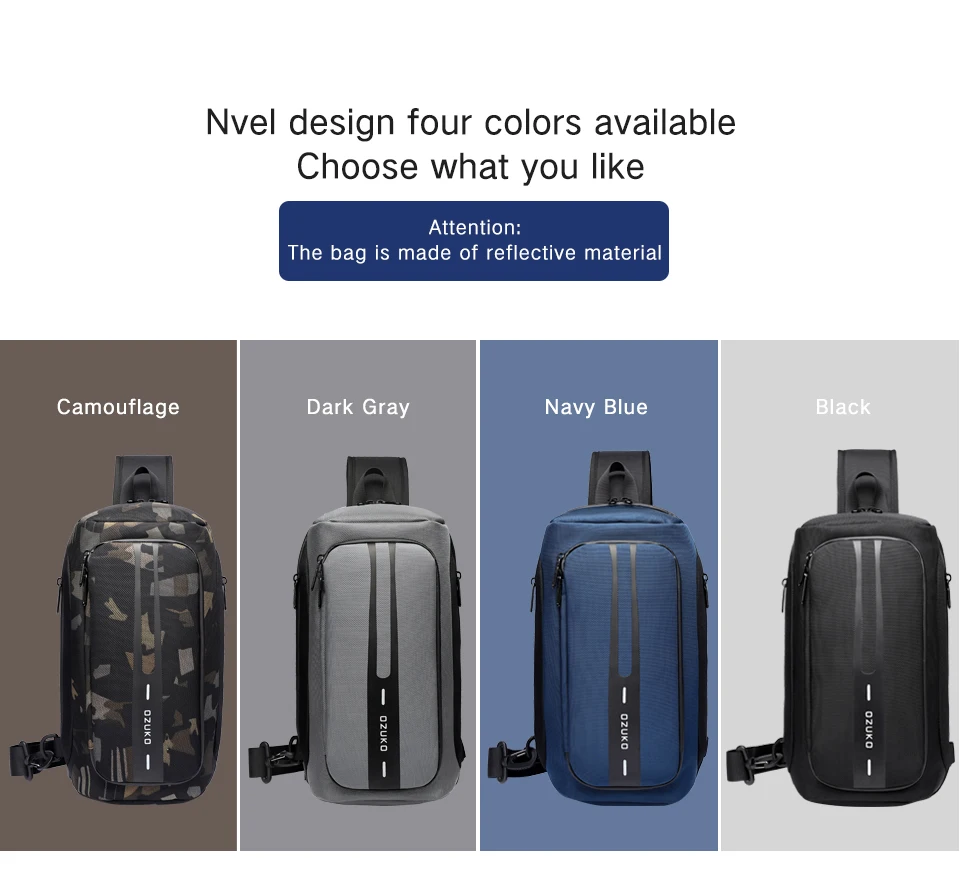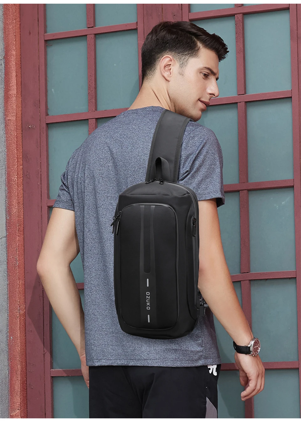 OZUKO Fashion Men Chest Bag Anti Theft Male Sling Messenger Bags Waterproof Male Outdoor Chest Pack Man USB Charge Crossbody Bag