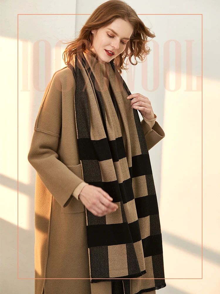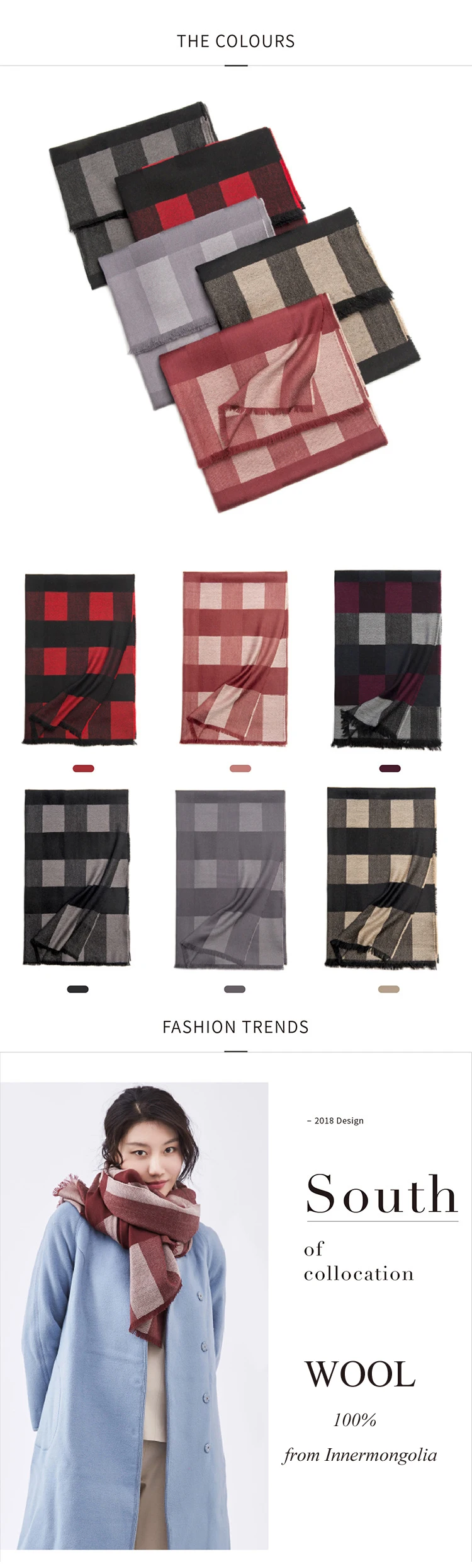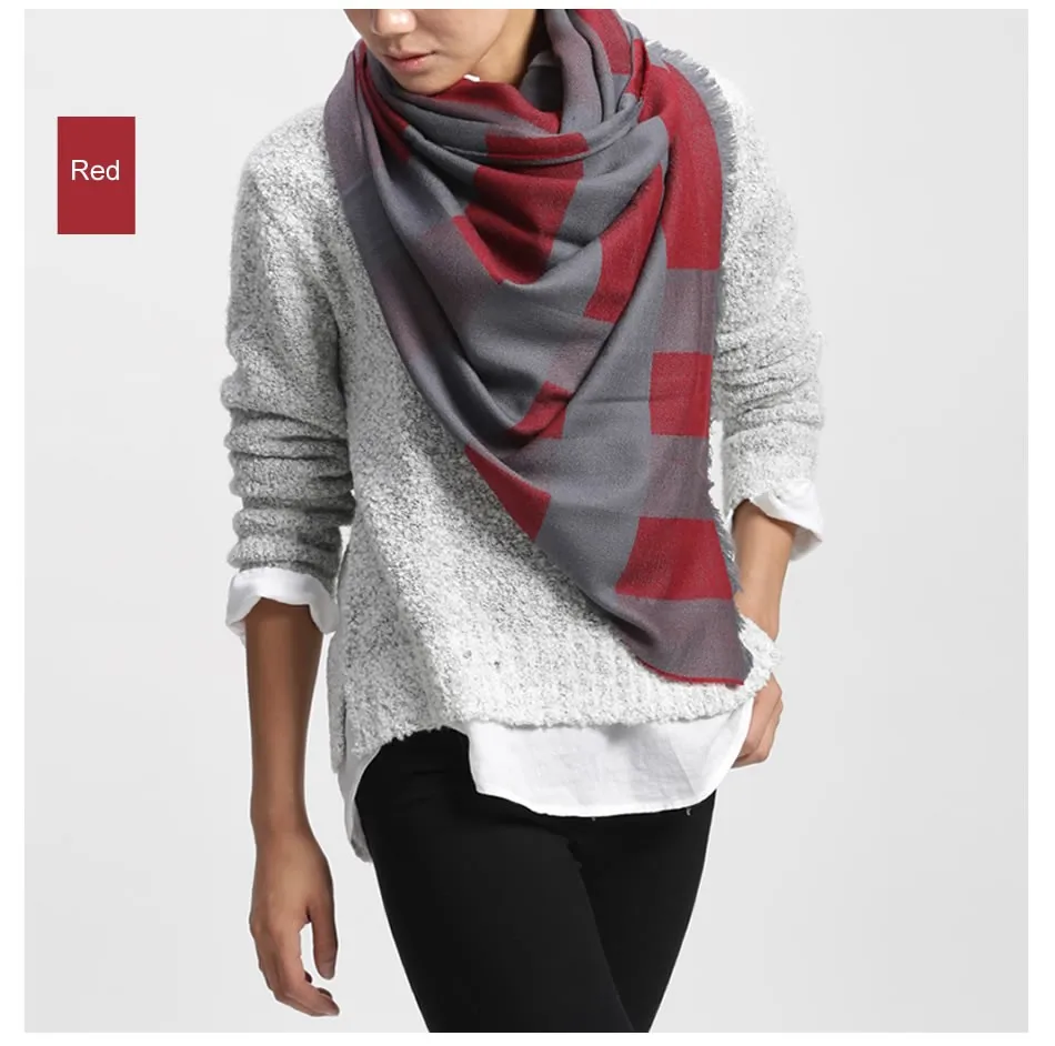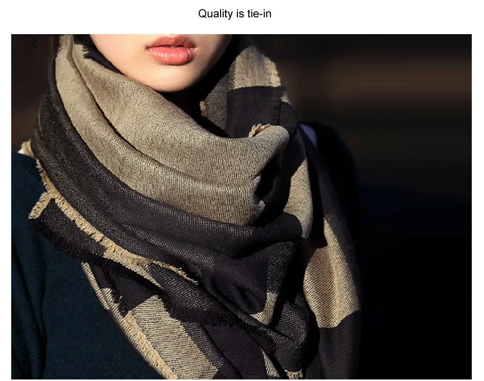 Wool Plaid Cashmere Pashmina Winter Warm Shawl.